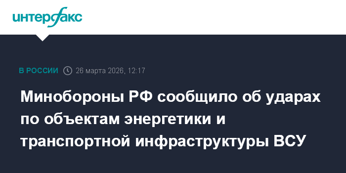 Минобороны РФ сообщило об ударах по объектам энергетики и транспортной инфраструктуры ВСУ
