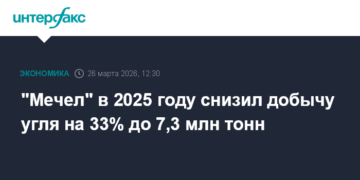 Москва. 26 марта. INTERFAX.RU - "Мечел" в 2025 году снизил объем добычи угля на 33%, до 7,3 млн тонн, сообщила компания.