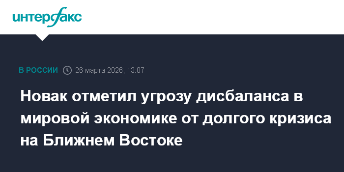 Новак отметил угрозу дисбаланса в мировой экономике от долгого кризиса на Ближнем Востоке