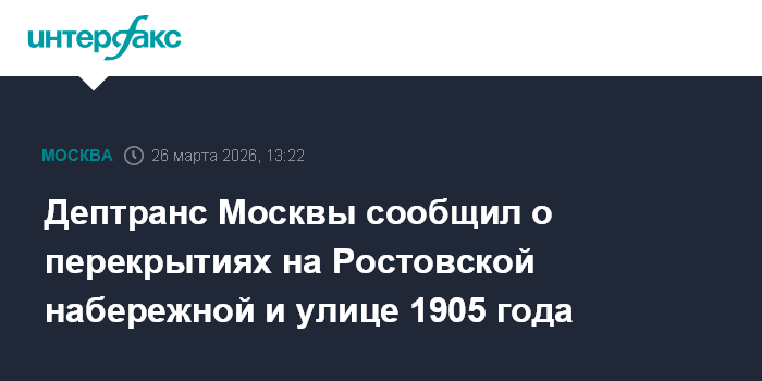 Дептранс Москвы сообщил о перекрытиях на Ростовской набережной и улице 1905 года