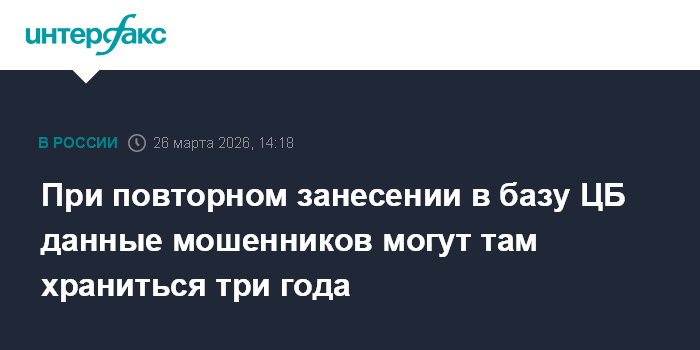 При повторном занесении в базу ЦБ данные мошенников могут там храниться три года