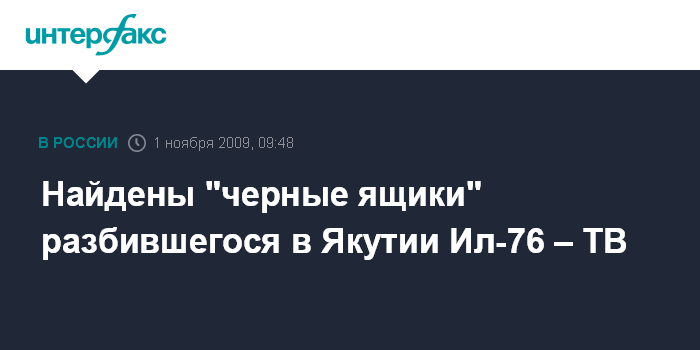 Москва. 1 ноября. ИНТЕРФАКС-ДАЛЬНИЙ ВОСТОК - На месте крушения самолета Ил-76 в Якутии найдены бортовые самописцы, сообщает в воскресенье утром телеканал "Вести-24".