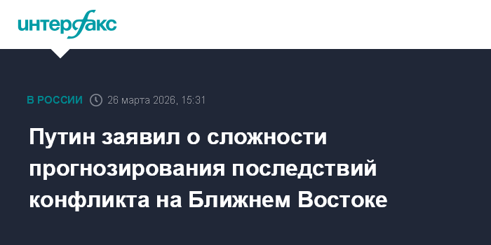 Москва. 26 марта. INTERFAX.RU - Последствия конфликта на Ближнем Востоке сложно спрогнозировать, это не могут сделать даже вовлеченные в него участники, заявил президент РФ Владимир Путин.