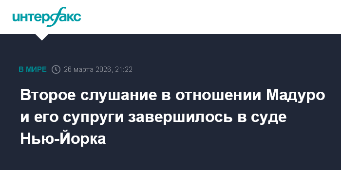 Москва. 26 марта. INTERFAX.RU - Второе слушание в отношении президента Венесуэлы Николаса Мадуро и его супруги Силии Флорес завершилось в четверг в федеральном суде Нью-Йорка, сообщает CNN.