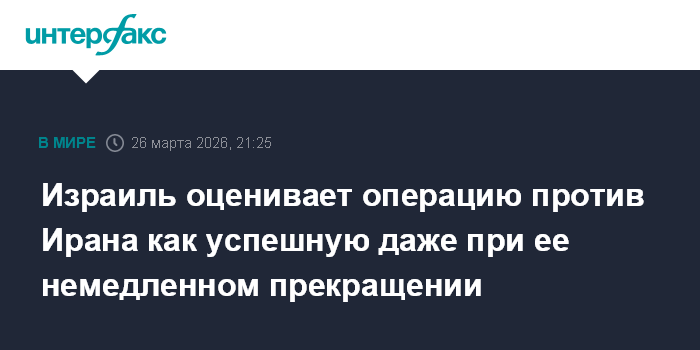 Москва. 26 марта. INTERFAX.RU - Операцию Израиля против Ирана, даже если ее остановить сейчас, можно оценить как успешную из-за нанесенного иранскому военному потенциалу урона, сообщает в четверг The Wall Street Journal (WSJ) со ссылкой на источники в израильской сфере безопасности.