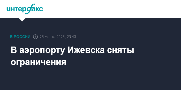 Москва. 26 марта. INTERFAX.RU - Вводившиеся ранее ограничения в аэропорту Ижевска сняты, сообщает госкомитет по делам ГО и ЧС Удмуртии.