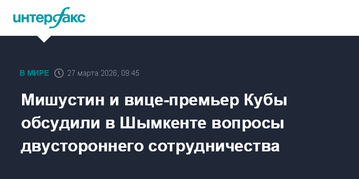 Мишустин и вице-премьер Кубы обсудили в Шымкенте вопросы двустороннего сотрудничества