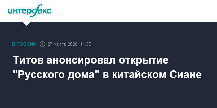 Титов анонсировал открытие "Русского дома" в китайском Сиане
