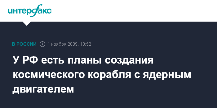 У РФ есть планы создания космического корабля с ядерным двигателем