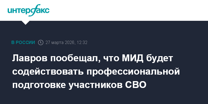 Москва. 27 марта. INTERFAX.RU - Министерство иностранных дел будет содействовать организации обучения и профессиональной переподготовки участников Специальной военной операции, заявил глава ведомства Сергей Лавров.