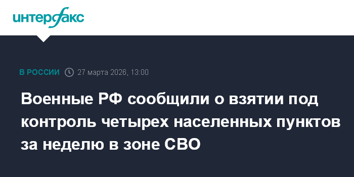 Москва. 27 марта. INTERFAX.RU - Российские группировки войск за неделю взяли под контроль в зоне специальной военной операции четыре населённых пункта, улучшили положение на линии боевого соприкосновения с противником, сообщает министерство обороны РФ.