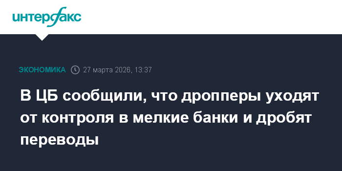 В ЦБ сообщили, что дропперы уходят от контроля в мелкие банки и дробят переводы