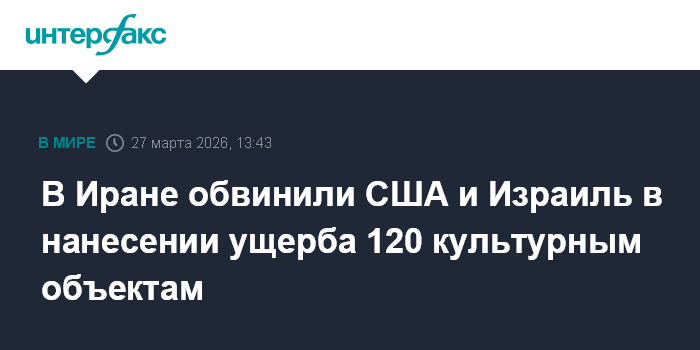 "Действия США и Израиля против Ирана нанесли серьезный ущерб не менее чем 120 музеям, историческим зданиям и памятникам культуры", - сказано в заявлении.