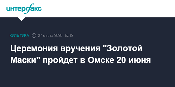 Москва. 27 марта. INTERFAX.RU -Церемония вручения XXXII национальной театральной премии "Золотая Маска" в 2026 году пройдет 20 июня в Омске, сообщил президент премии и фестиваля, председатель Союза театральных деятелей России Владимир Машков.