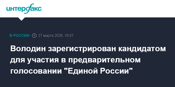 Володин зарегистрирован кандидатом для участия в предварительном голосовании "Единой России"
