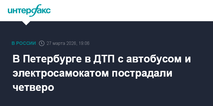Москва. 27 марта. INTERFAX.RU - В Красносельском районе Петербурга электросамокат столкнулся с автобусом, пострадали четыре человека, сообщило региональное управление МВД.
