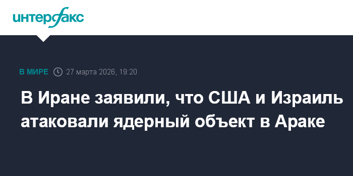 Москва. 27 марта. INTERFAX.RU - Один из ядерных объектов Ирана, расположенный на западе страны в районе города Арак, подвергся ударам со стороны США и Израиля, сообщает в пятницу издание The National.