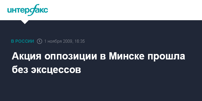 Минск. 1 ноября. INTERFAX.RU - Акция белорусской оппозиции, приуроченная ко дню поминовения предков - Дзяды", завершилась траурным митингом в урочище Куропаты под Минском, передает корреспондент агентства "Интерфакс-Запад". Участники акции установили в Куропатах 10 новых деревянных крестов, которые они несли по всему маршруту шествия. Ранее они прошли по Минску. В шествии приняли участие представители практически всех правых партий и оппозиционных движений Белоруссии. Шествие оппозиции прошло без эксцессов.