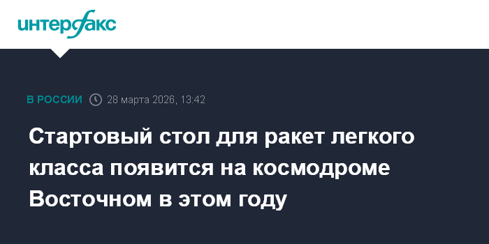 Москва. 28 марта. INTERFAX.RU - Космодром Восточный получит стартовый стол для запуска ракет легкого класса до конца текущего года, сообщил генеральный директор госкорпорации "Роскосмос" Дмитрий Баканов.