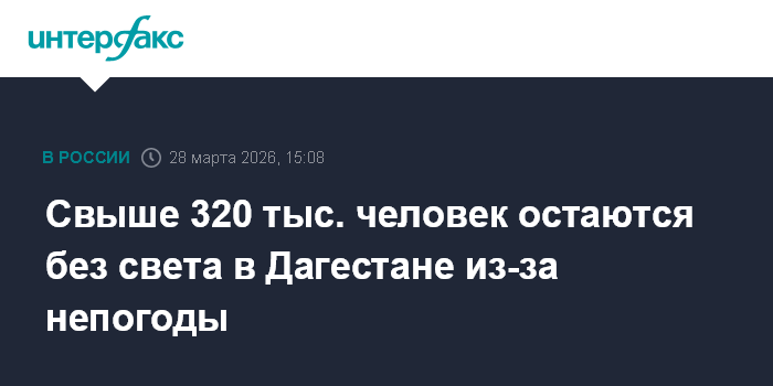 Москва. 28 марта. INTERFAX.RU - Порядка 283 населенных пунктов с населением свыше 320 тыс. человек остаются без света в Дагестане из-за непогоды, сообщает пресс-служба ГУ МЧС по республике в субботу.