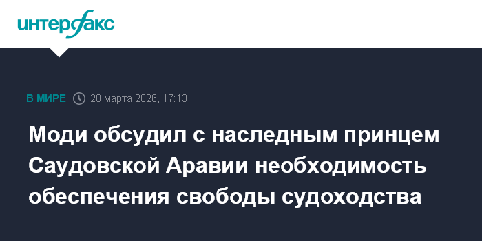 Моди обсудил с наследным принцем Саудовской Аравии необходимость обеспечения свободы судоходства