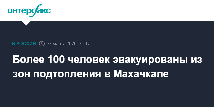 Москва. 28 марта. INTERFAX.RU - Более 100 человек эвакуировали в Махачкале в субботу на фоне ЧС с подтоплениями, 30 из них находятся в пунктах временного размещения, сообщает администрация города.
