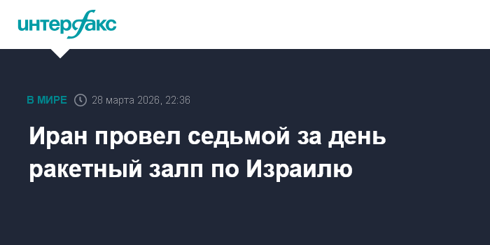 Москва. 28 марта. INTERFAX.RU - Израильские военные заявили о седьмой за день волне ракетных обстрелов из Ирана, сообщают ближневосточные СМИ.