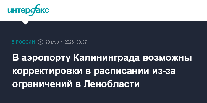 Москва. 29 марта. INTERFAX.RU - В связи с введением временных ограничений в Ленинградской области в аэропорту Калининграда возможны корректировки в расписании рейсов, сообщает в воскресенье Росавиация.