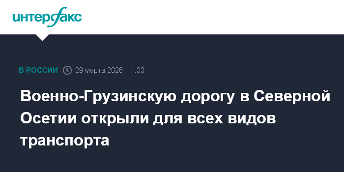 "В связи с возможностью обеспечения безопасного проезда автотранспортных средств (...) разрешено движение всех видов автотранспортных средств на участке город Владикавказ - населенный пункт Ларс в обоих направлениях с 11:20 мск 29 марта до особого распоряжения", - говорится в сообщении.