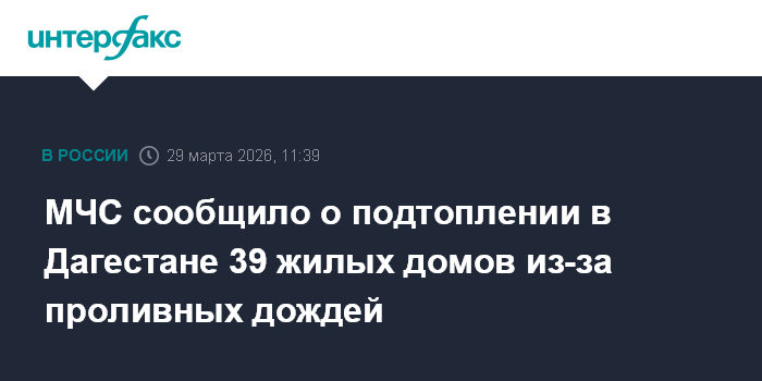 Москва. 29 марта. INTERFAX.RU - Сильные дожди вызвали подтопление около сорока жилых домов в Дагестане, сообщила пресс-служба МЧС РФ в воскресенье.