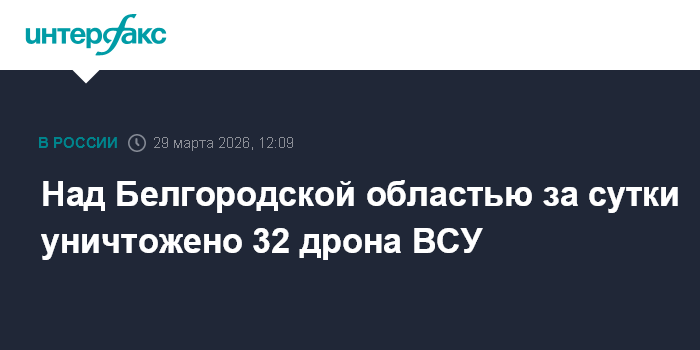"С 07:00 ч. 28 марта по 07:00 ч. 29 марта ликвидированы 32 беспилотника", - написал он в своем телеграм-канале в воскресенье.