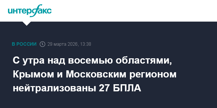 С утра над восемью областями, Крымом и Московским регионом нейтрализованы 27 БПЛА