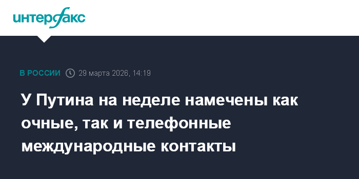 Москва. 29 марта. INTERFAX.RU - В графике президента РФ Владимира Путина на будущей неделе как очные контакты, так и международные разговоры по телефону, а также работа с регионами.