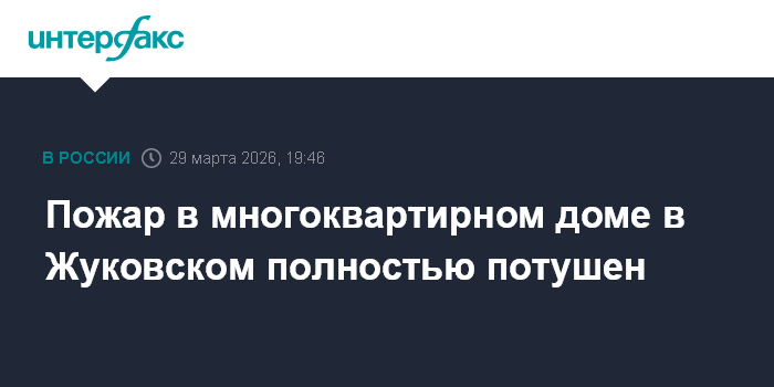 Москва. 29 марта. INTERFAX.RU - Пожарные полностью ликвидировали возгорание в многоквартирном доме в подмосковном Жуковском, сообщила пресс-служба МЧС РФ в воскресенье.