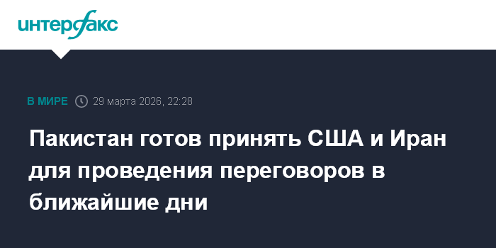 Москва. 29 марта. INTERFAX.RU - США и Иран выразили уверенность в способности Пакистана предоставить подходящую площадку для переговоров, которые Исламабад будет готов принять в ближайшие дни, заявил в воскресенье глава МИД Пакистана Исхак Дар.