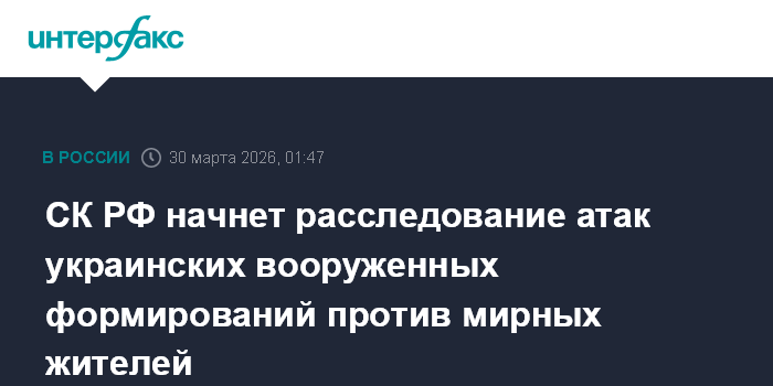 Москва. 29 марта. INTERFAX.RU - Следственный комитет (СК) Российской Федерации объявил о начале расследования преступных действий украинских вооруженных формирований, в результате которых пострадали мирные жители в нескольких регионах России.