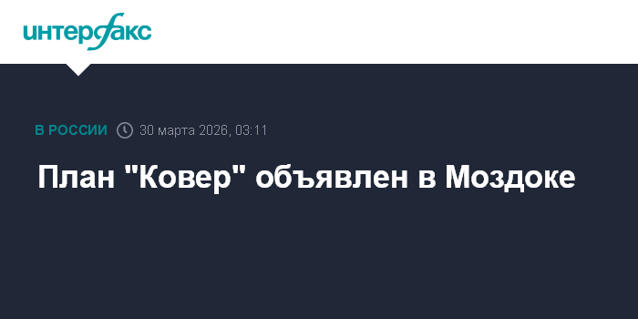 Москва. 30 марта. INTERFAX.RU - Глава Республики Северная Осетия - Алания Сергей Меняйло сообщил о введении плана "Ковер" на территории Моздока.