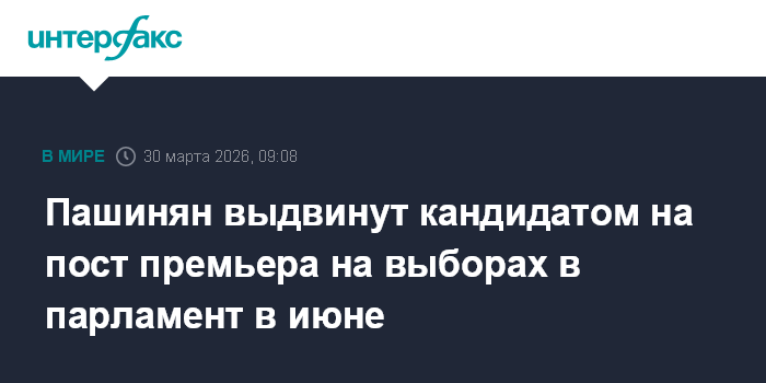 Москва. 30 марта. INTERFAX.RU - Действующий премьер-министр Армении Никол Пашинян выдвинут кандидатом на пост премьера от возглавляемой им партии "Гражданский договор" на предстоящих в июне парламентских выборах.