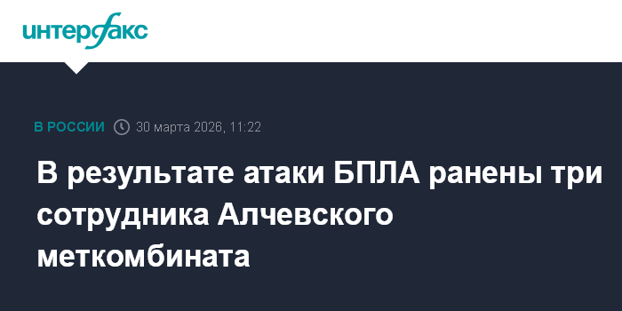 Москва. 30 марта. INTERFAX.RU - В Луганской народной республике в ночь на 30 марта БПЛА атаковали Алчевск, Луганск, Антрацитовский, Славяносербский и Перевальский муниципальные округа, были ранены три сотрудника Алчевского металлургического комбината, сообщил глава региона Леонид Пасечник.