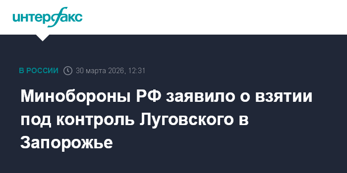 Москва. 30 марта. INTERFAX.RU - Вооруженные силы России взяли под контроль село Луговское в Запорожской области, сообщило министерство обороны РФ в понедельник.