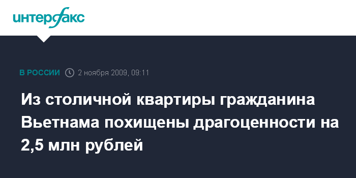 Из столичной квартиры гражданина Вьетнама похищены драгоценности на 2,5 млн рублей