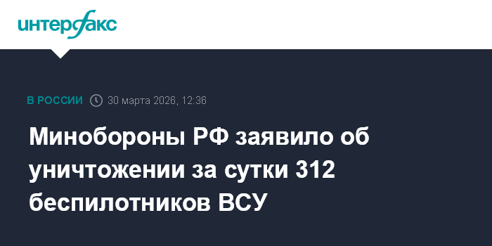 Минобороны РФ заявило об уничтожении за сутки 312 беспилотников ВСУ