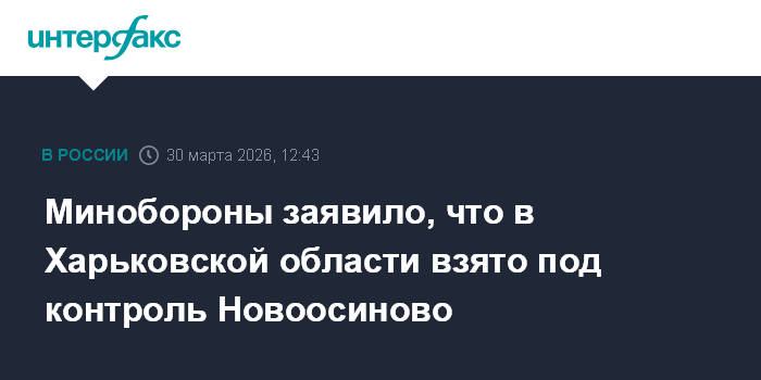 Москва. 30 марта. INTERFAX.RU - Вооруженные силы России взяли под контроль село Новоосиново в Харьковской области, сообщило министерство обороны РФ в понедельник.