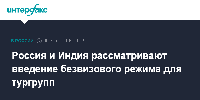 Москва. 30 марта. INTERFAX.RU - Власти России и Индии обсуждают введение безвизового режима между странами для туристических групп на срок не более 21 дня, сообщили "Интерфаксу" в пресс-службе Минэкономразвития.