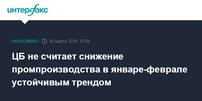 ЦБ не считает снижение промпроизводства в январе-феврале устойчивым трендом