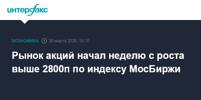 Москва. 30 марта. INTERFAX.RU - Рынок акций РФ начал неделю с роста индексов на фоне подъема металлов и высокой нефти из-за эскалации напряженности на Ближнем Востоке, сдерживающим фактором для покупателей оставалась неопределенность с дальнейшими переговорами по украинскому урегулированию. Индекс МосБиржи завершил основную сессию выше 2800 пунктов при смешанной динамике цен blue chips.