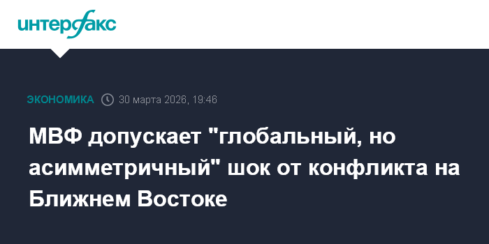 Москва. 30 марта. INTERFAX.RU - Американо-израильская военная кампания против Ирана грозит "глобальным, но асимметричным" шоком, омрачая перспективы недовосстановившихся экономик, пишут экономисты Международного валютного фонда (МВФ).