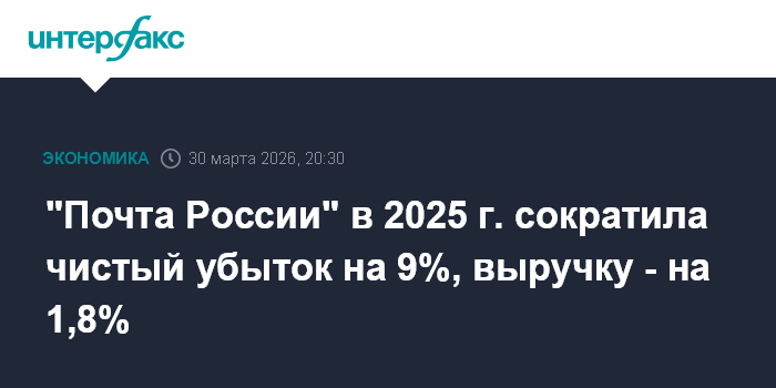 "Почта России" в 2025 г. сократила чистый убыток на 9%, выручку - на 1,8%