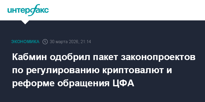 Кабмин одобрил пакет законопроектов по регулированию криптовалют и реформе обращения ЦФА
