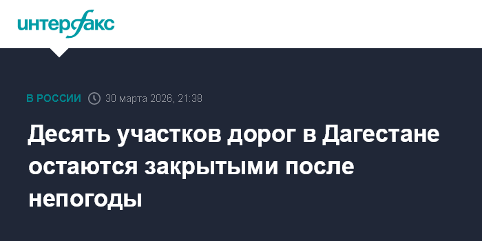 Москва. 30 марта. INTERFAX.RU - Движения автотранспорта по десяти участкам автодорог в Дагестане остается закрытым после ливней, сообщает ГКУ "Дагестанавтодор" в понедельник.